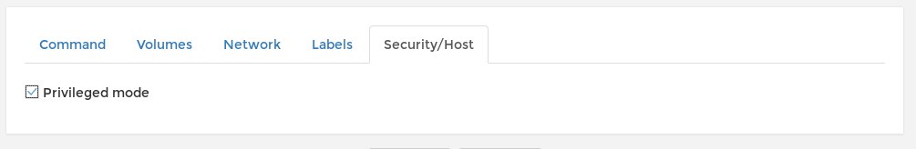 Then from the security tab we choose privileged mode.