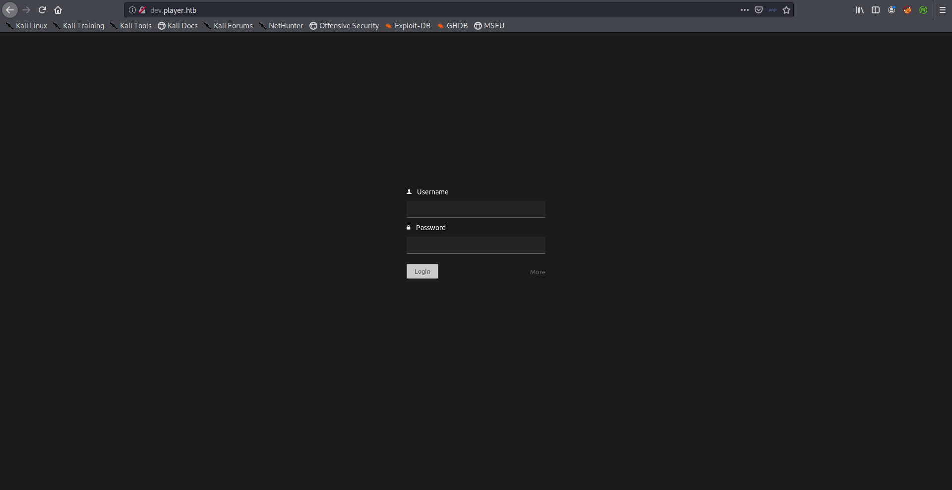 root@kali:~/Desktop/HTB/boxes/player# gobuster dir -u http://dev.player.htb/ -w /usr/share/wordlists/dirb/common.txt