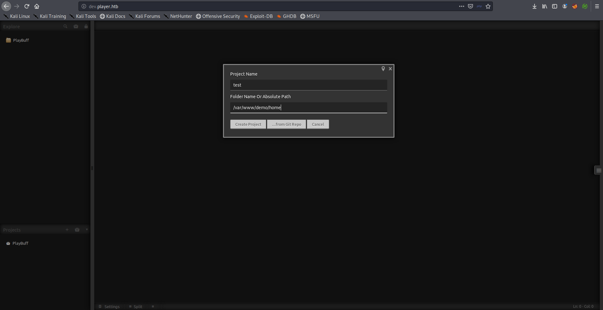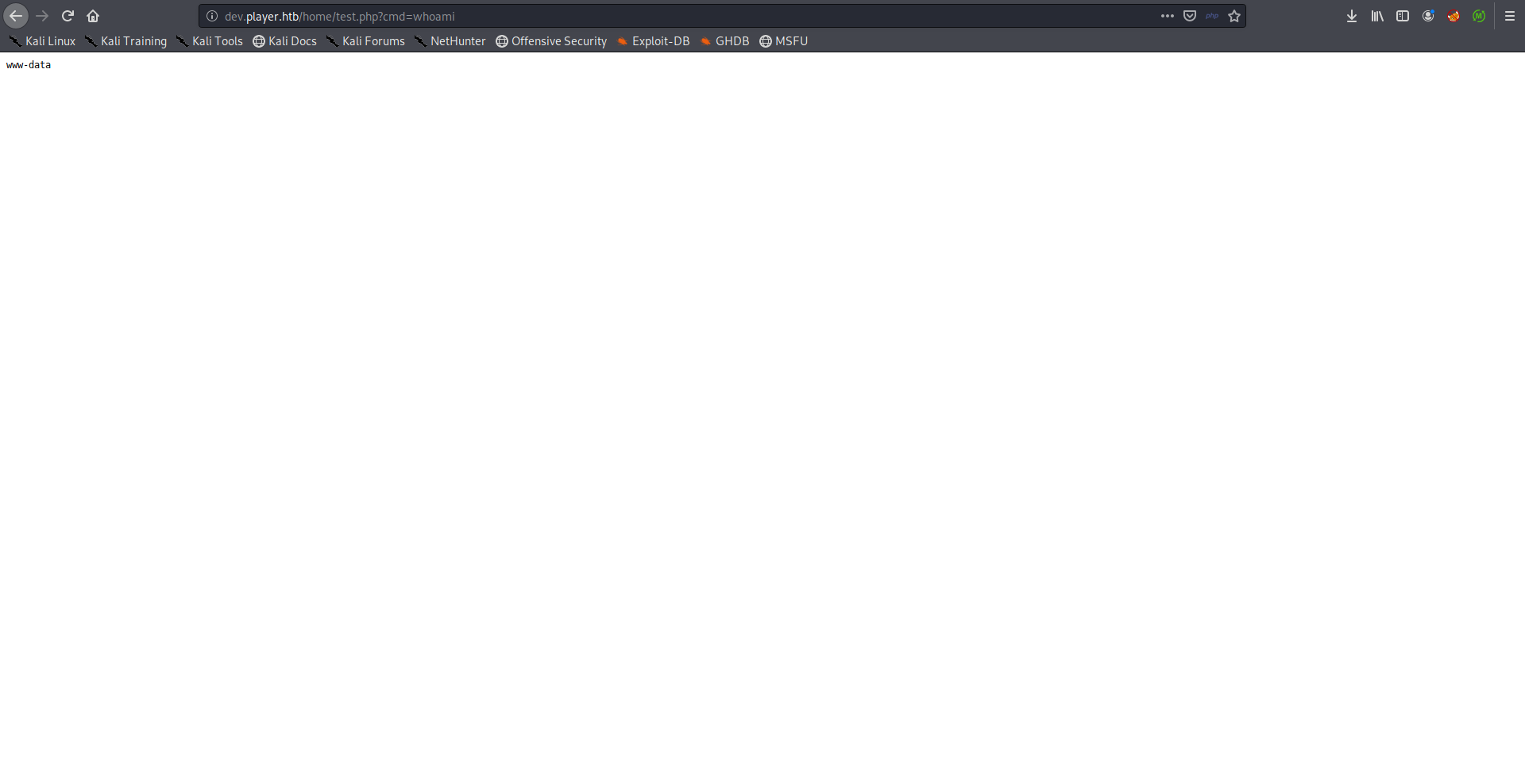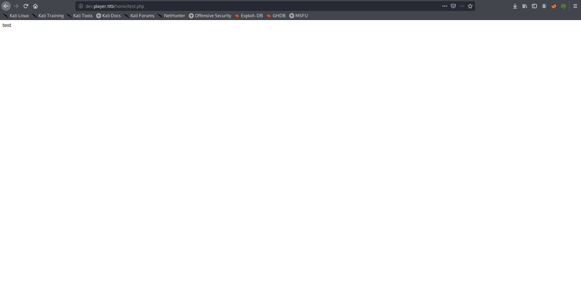 When I ran gobuster on http://dev.player.htb/ there was a directory called home: