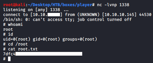 root@kali:~/Desktop/HTB/boxes/player# nc -lvnp 1337