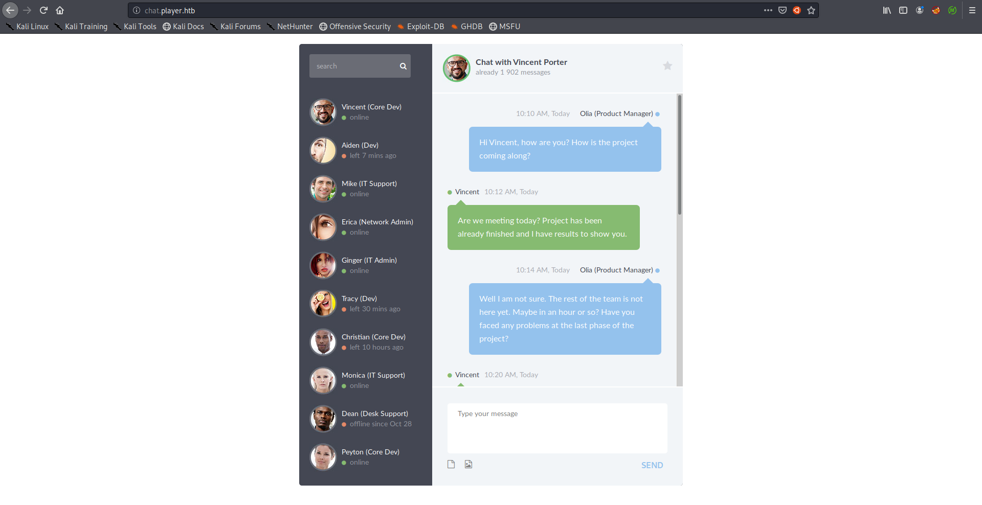 I took a quick look at the chat history between Olla and Vincent, Olla asked him about some pentest reports and he replied with 2 interesting things :