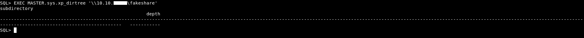 I ran responder (responder -I tun0) and used xp_dirtree to see what hashes can I catch :