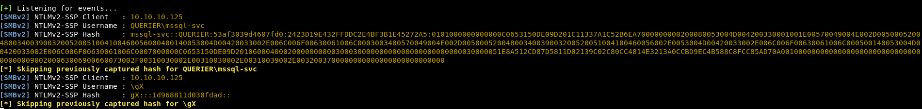 [*] Skipping previously captured hash for QUERIER\mssql-svc