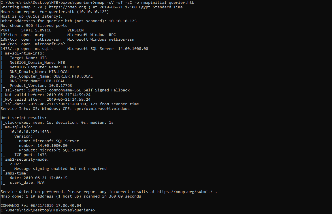 nmap -sV -sT -sC querier.htb