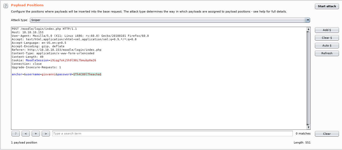 Nice , we have a username and a password but we still need to figure out the last character. But where will we use these credentials anyway ? I ran gobuster with /usr/share/wordlists/dirbuster/directory-list-2.3-medium.txt in the background and got some results , one of them was /moodle.