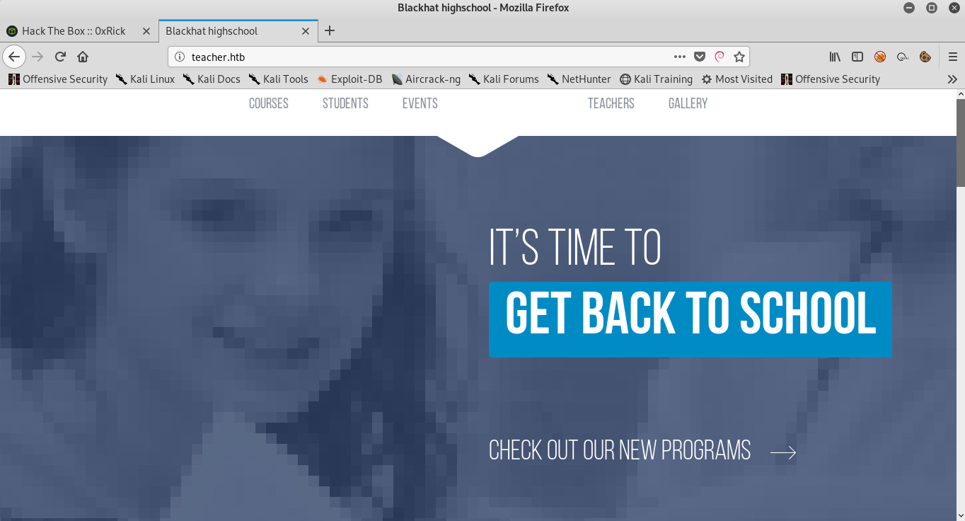 There is just a static website titled Blackhat highschool , I looked into other pages like Courses , Students etc… And also checked their source code. And on Gallery :