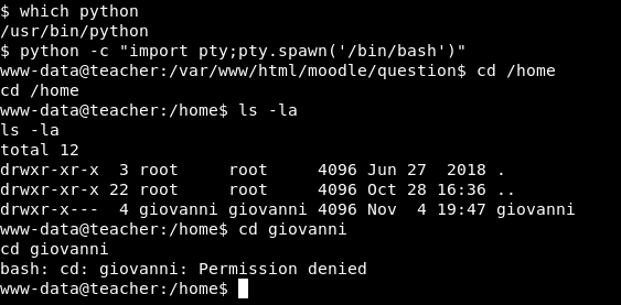 There is only giovanni on the box and we can’t access his /home directory as www-data.