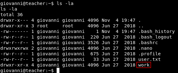 In giovanni’s /home directory there is a directory called work which has two directories courses and tmp. Nothing Special.