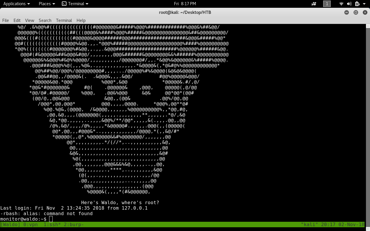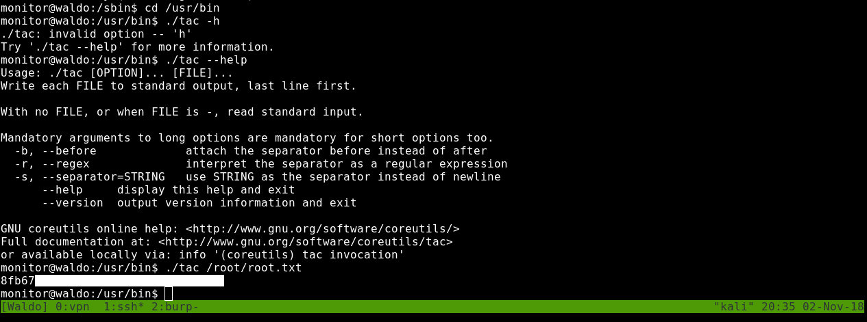 Waldo was a great box and what makes it special is its unique way in getting the root flag. Every step with this box was very fun and I liked this box too much.