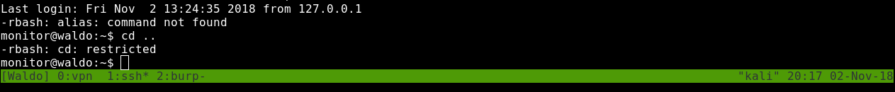 But we are in a restricted shell and can’t run commands.