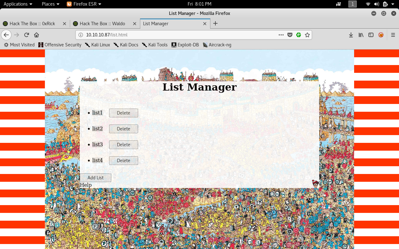 On port 80 there’s a web application called List Manager.