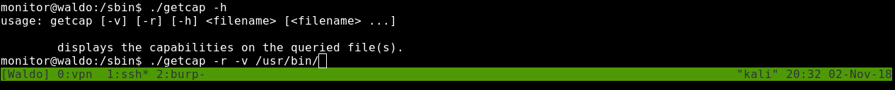 If we look at the bins in /sbin we will see getcap.