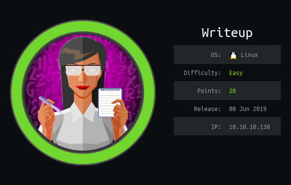 Hey guys, today writeup retired and here’s my write-up about it. It was a very nice box and I enjoyed it. It’s a Linux box and its ip is 10.10.10.138, I added it to /etc/hosts as writeup.htb. Let’s jump right in !