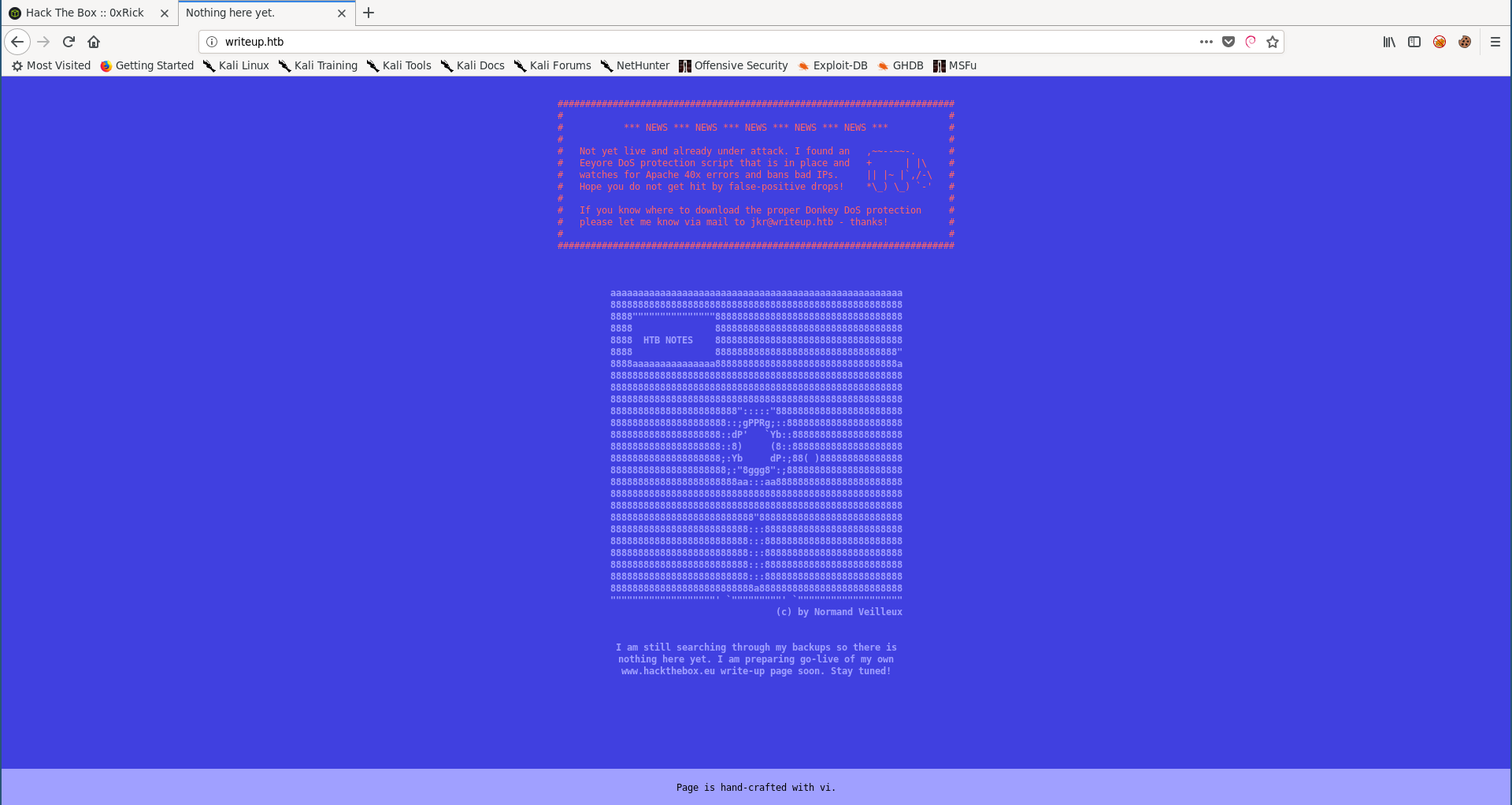 The index page says that the website is not ready yet, it also says that there’s a dos protection script so we won’t bruteforce anything.