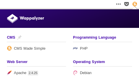I checked wappalyzer’s results and saw that it’s using a cms called CMS Made Simple :
