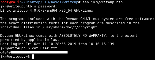 root@kali:~/Desktop/HTB/boxes/writeup# ssh jkr@writeup.htb