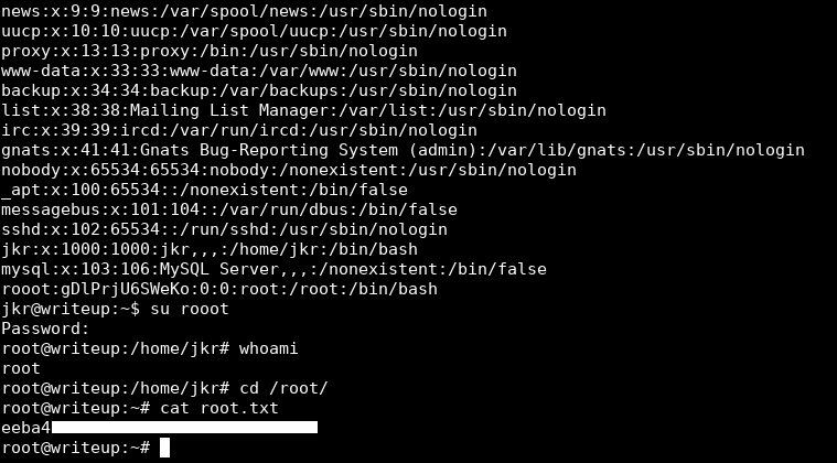 jkr@writeup:~$ cat /etc/passwd