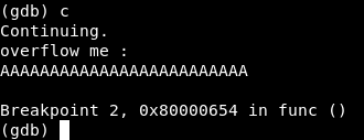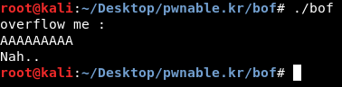 Then it prints overflow me : (printf("overflow me : ");) and waits for our input which will be saved in the variable overflowme (gets(overflowme);)