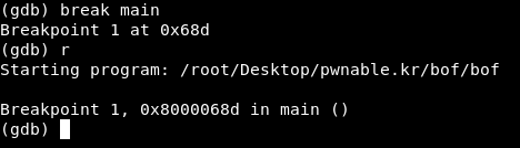 It’s time for gdb. I started gdb and created a break point at main (break main) then I started the program (r) :