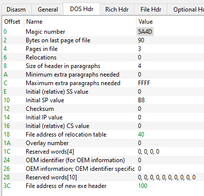 This structure is important to the PE loader on MS-DOS, however only a few members of it are important to the PE loader on Windows Systems, so we’re not going to cover everything in here, just the important members of the structure.