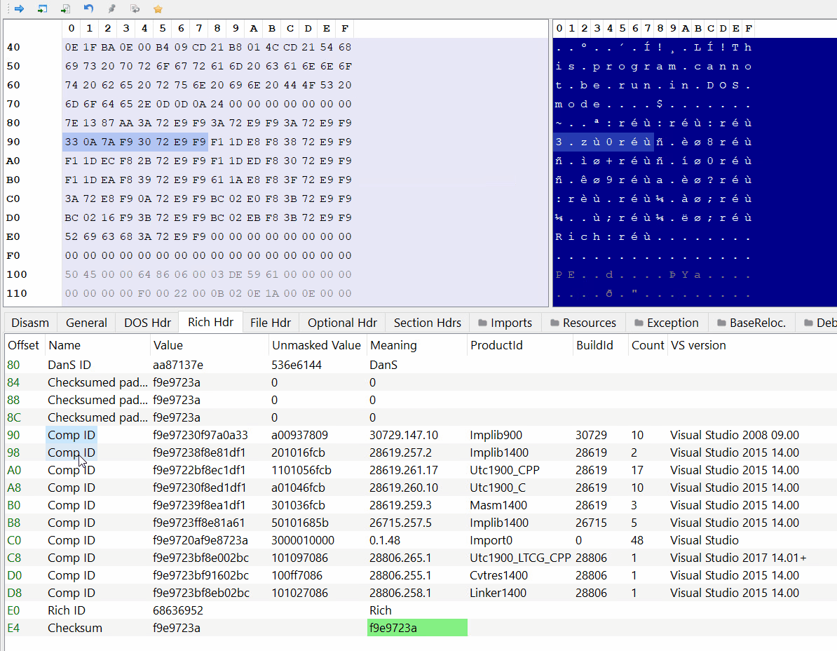 We also looked at the Rich Header, a structure that’s not essentially a part of the PE file format but was worth checking.