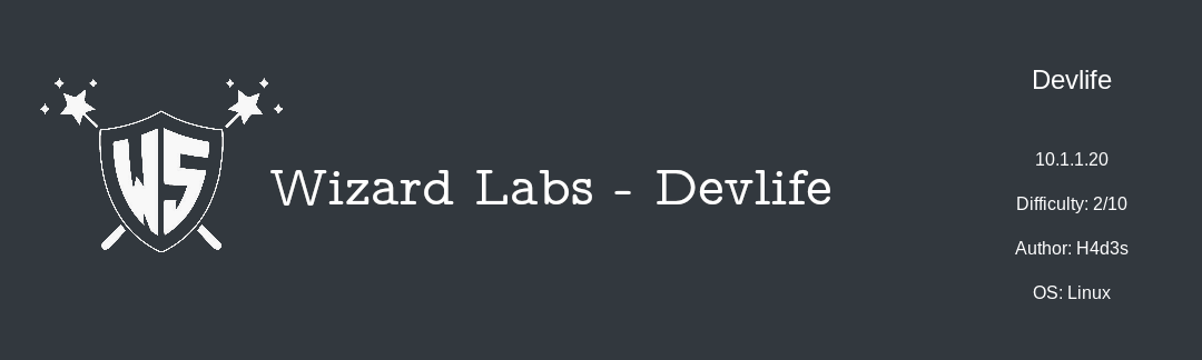 Hey guys this is my write-up about Devlife from Wizard Labs which is their second box to retire. Just like dummy it’s another easy box (Difficulty : 2/10) , It’s a linux box and its ip is 10.1.1.20 so let’s jump right in !