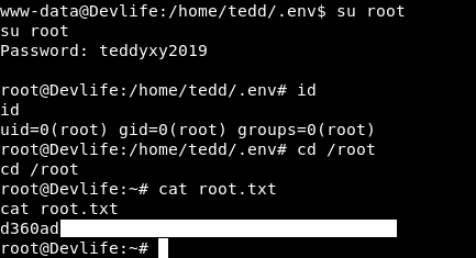 Now we can su to root using the password teddyxy2019 :