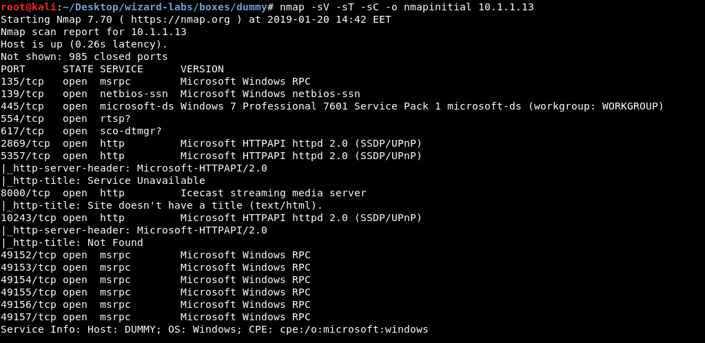 Hey guys this is my write-up about Dummy from Wizard Labs. If you don’t know them , They are a new penetration testing lab, They have 16 boxes so far and Dummy is their first box to retire. This lab is nice I definitely recommend checking it out. Dummy is a windows box and it was an easy one (Difficulty: 2/10). It had an http service which was vulnerable to a buffer overflow , and metasploit had a module for it so this box can be done easily through metasploit . I will show that, then we will take a look at the exploit and how it’s happening. The ip of the box is 10.1.1.13 so let’s jump right in.