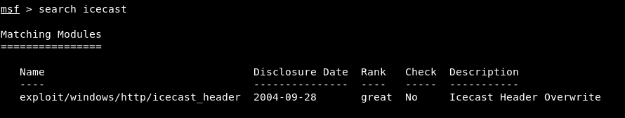 By doing search icecast we will find the module , and it’s an exploit from 2004.